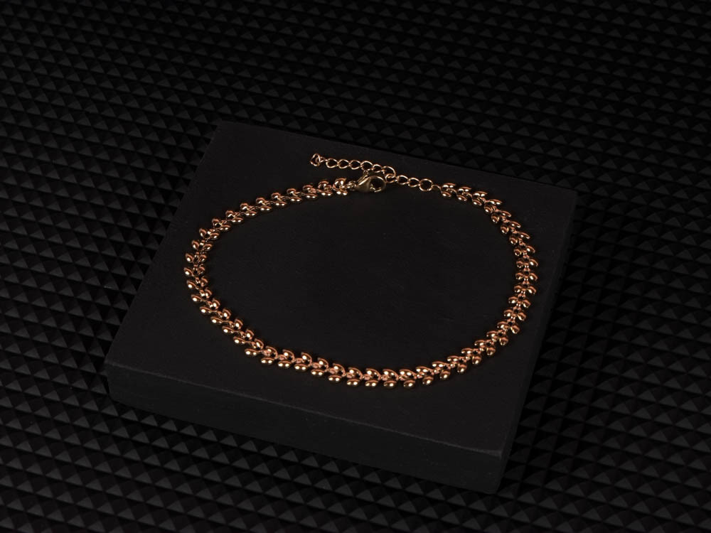 Stílusos bokalánc finoman kidolgozott levélmintás szemekkel, melyek elegánsan követik a boka vonalát. Elérhető két klasszikus árnyalatban: fényes ezüst és meleg arany színben. A levél forma természetközeli, mégis modern megjelenést kölcsönöz. Könnyű és kényelmes viselet, mégis karakteres és egyedi kiegészítő. Tökéletes választás nyári outfitekhez vagy mezítlábas sétákhoz – diszkréten vonzza a tekintetet.