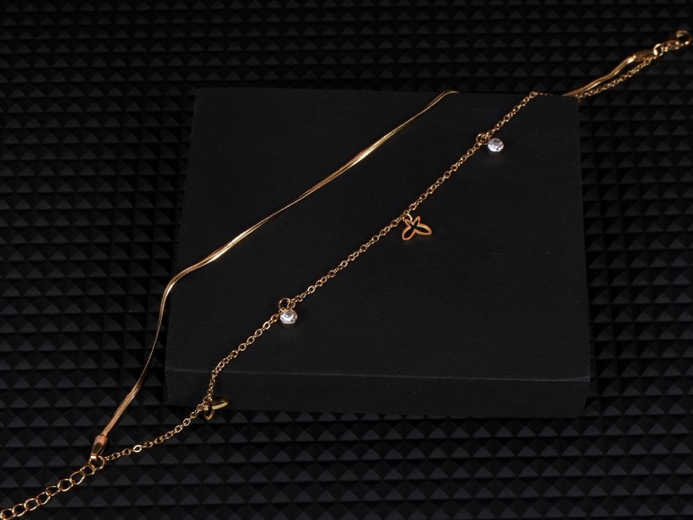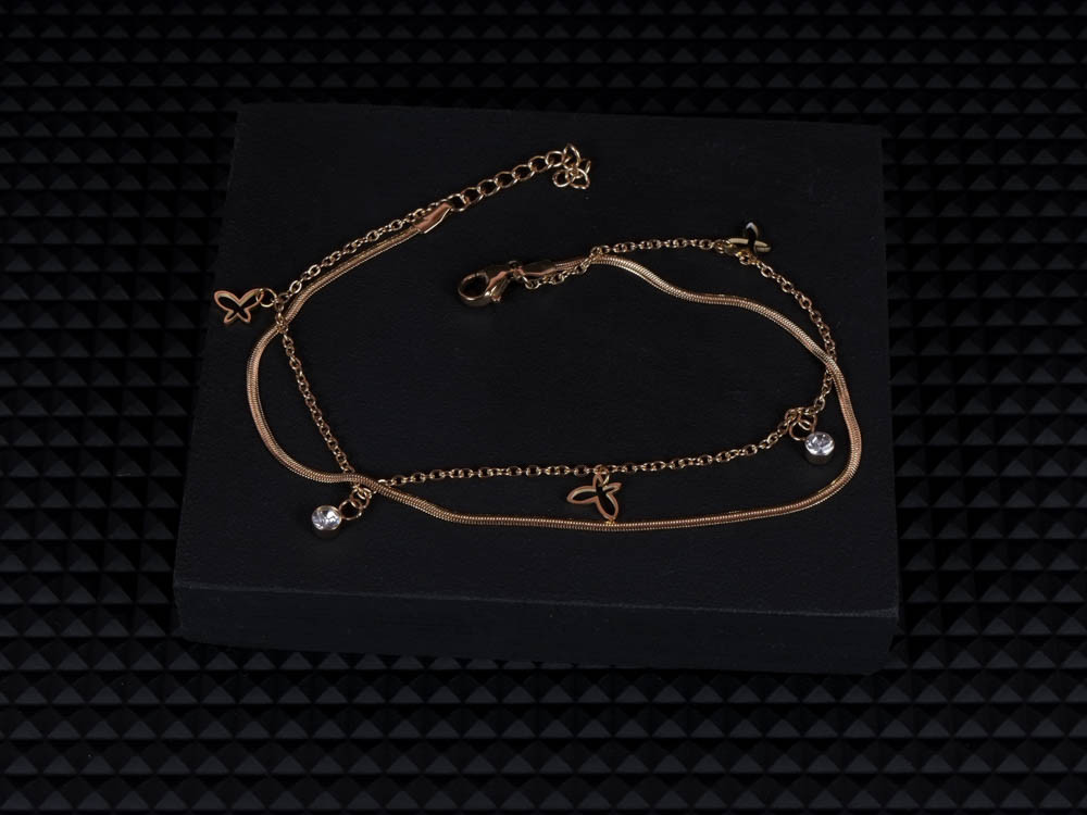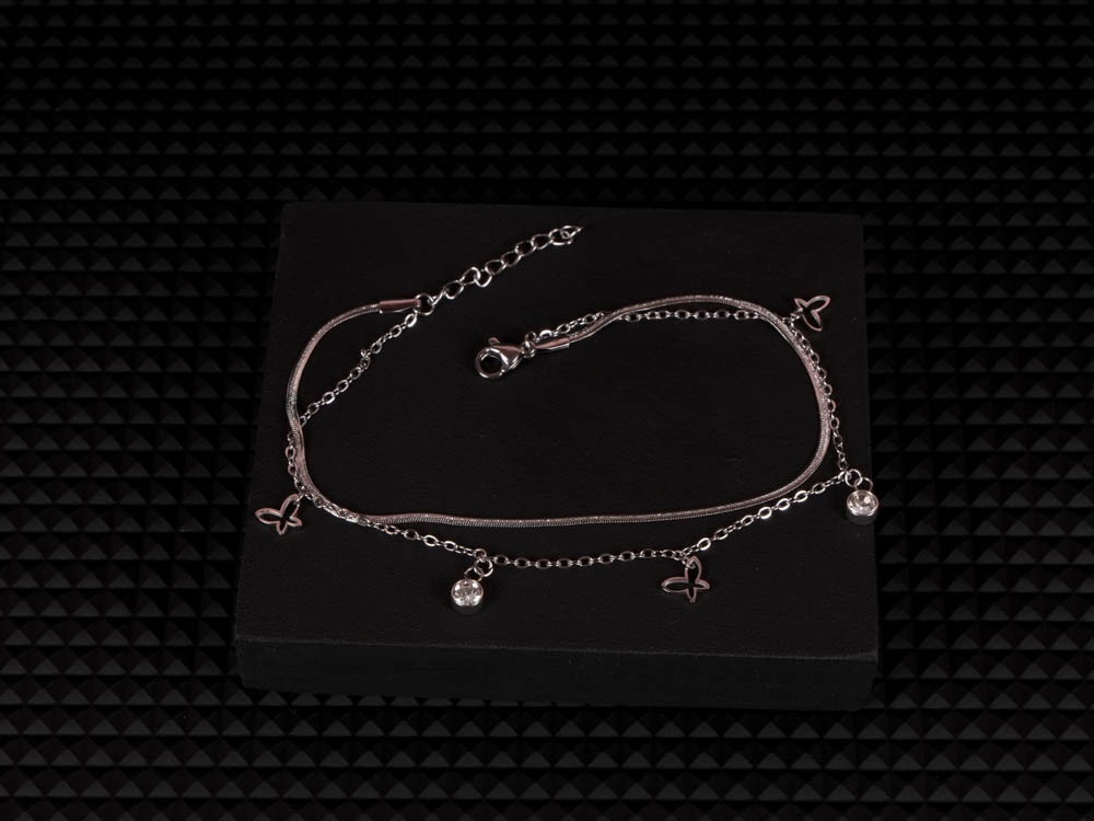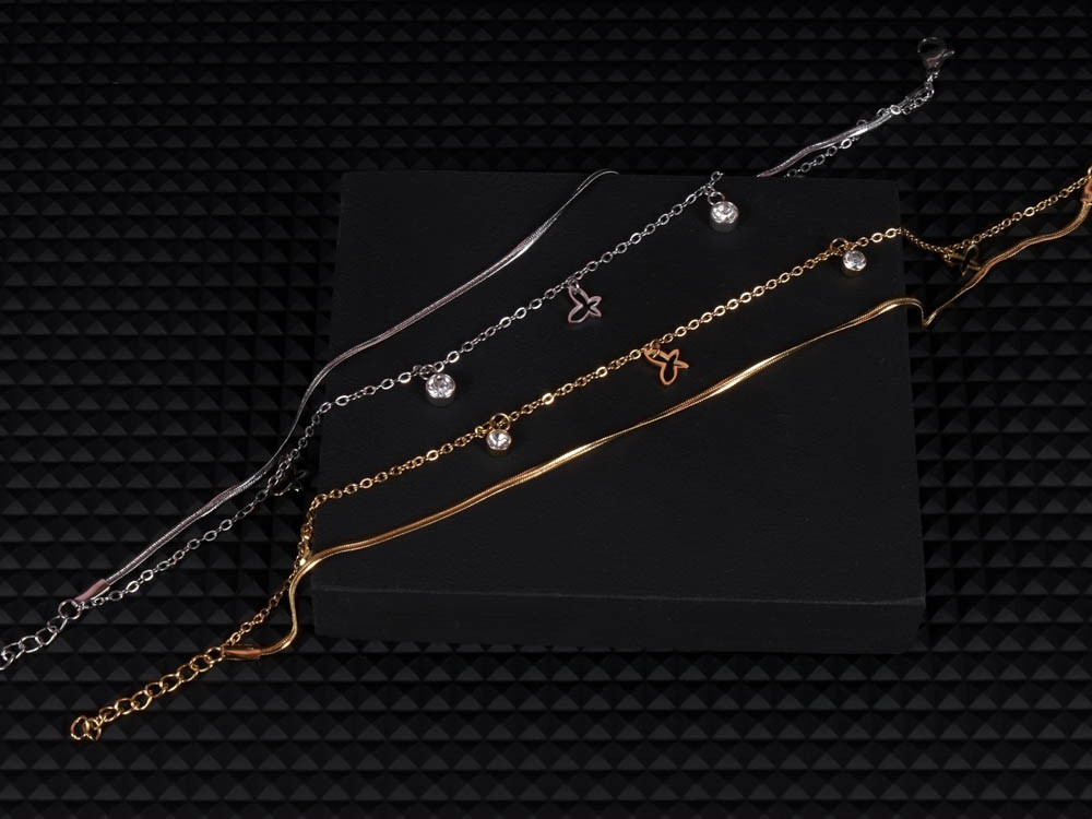 Kifinomult bokalánc csillogó pillangó medállal és apró kövekkel díszítve. A lánc arany és ezüst színben is tökéletes harmóniát alkot, kiemelve a nőies részleteket. A ragyogó kövek finoman verik vissza a fényt, romantikus, nyári hangulatot idézve. Könnyed, elegáns kiegészítő, ami mezítláb vagy szandállal viselve is feltűnő. Tartós, nemesacél alapanyagának köszönhetően hosszú távon is gyönyörű marad.